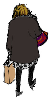 The lady in the coat I walked behind out of work. That was when I decided that "work" heels look kind of goony and I don't like them. I also had been bombarded with 50s style things and so I made the lady in the tiny shoes.